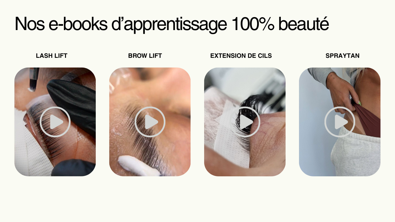 Grâce à des e-books professionnels en Spraytan et en beauté du regard, chacune peut se former à son rythme, à distance, sans diplôme préalable, et acquérir les compétences nécessaires pour se lancer en toute confiance dans le domaine de la beauté.